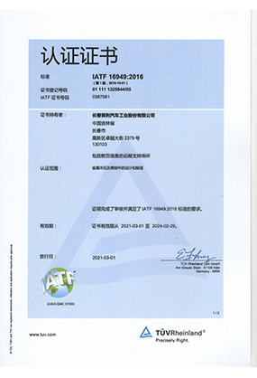IATF 16949 認(rèn)證證書