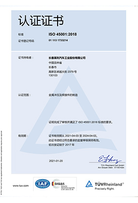 ISO 45001 認(rèn)證證書